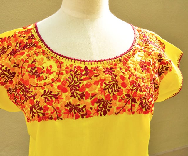 旅行雑誌フィガロ・ヴォヤージュにも掲載された、メキシコ オアハカ州 San Antonino(サン・アントニーノ)の刺繍ブラウスです。